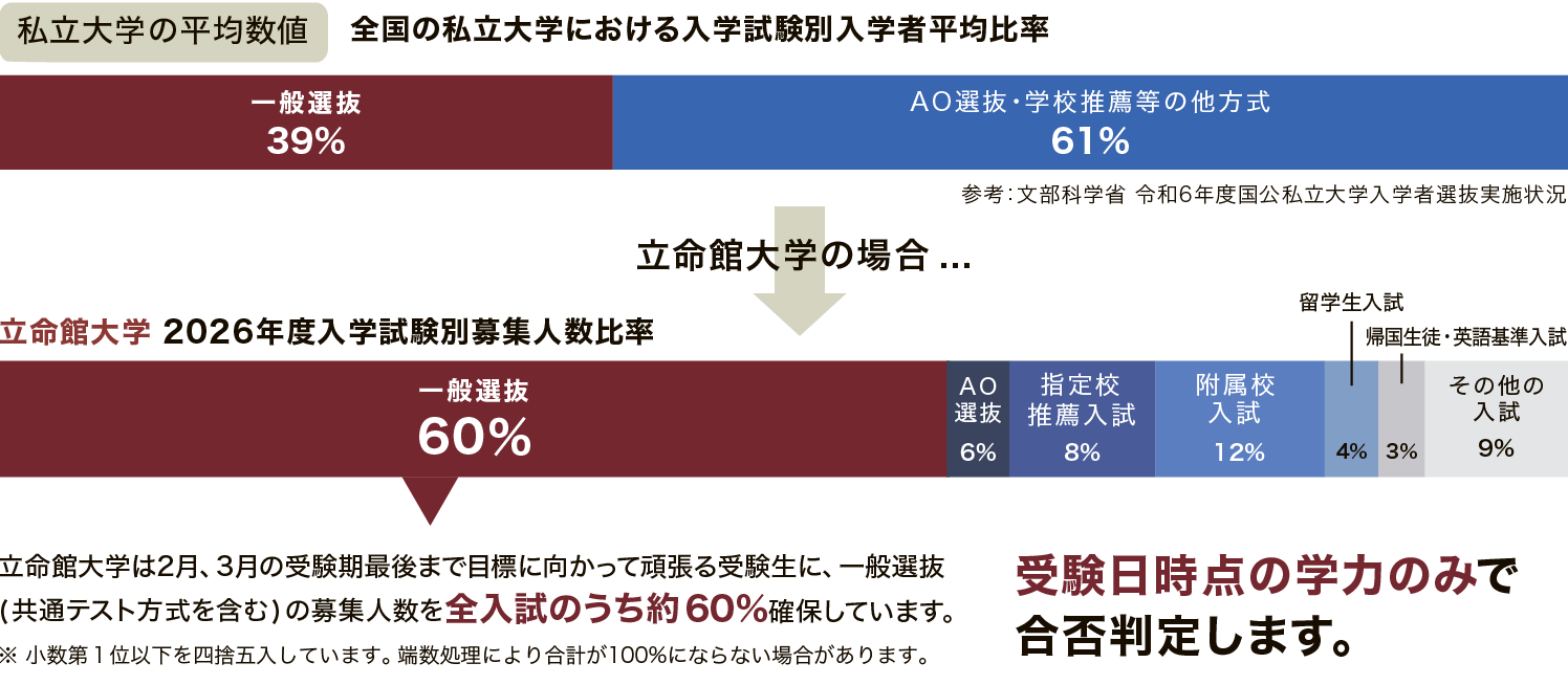 立命館大学の一般選抜は、最後まで目標に向かって努力する受験生を応援します。