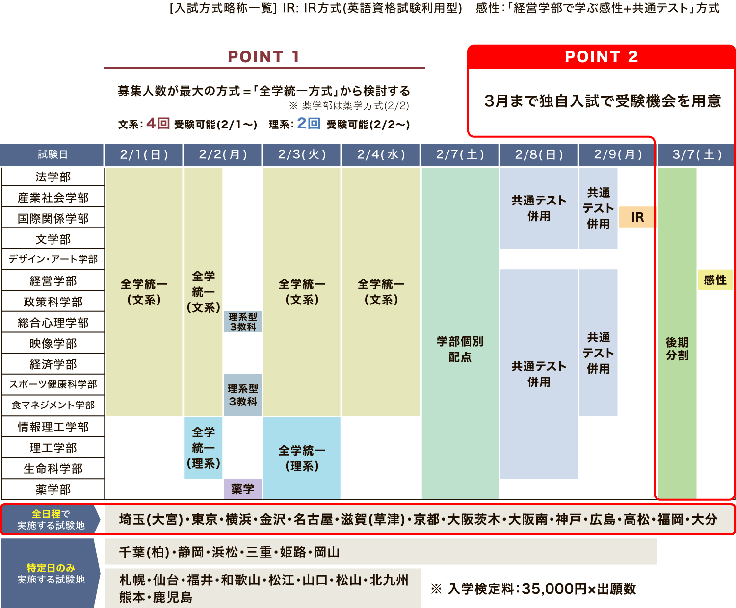 方式・試験地別日程
