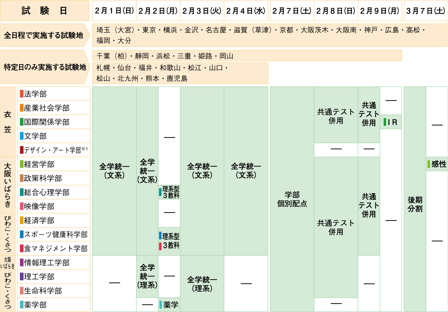 - 立命館大学と立命館アジア太平洋大学は、同一の試験問題を使用します。