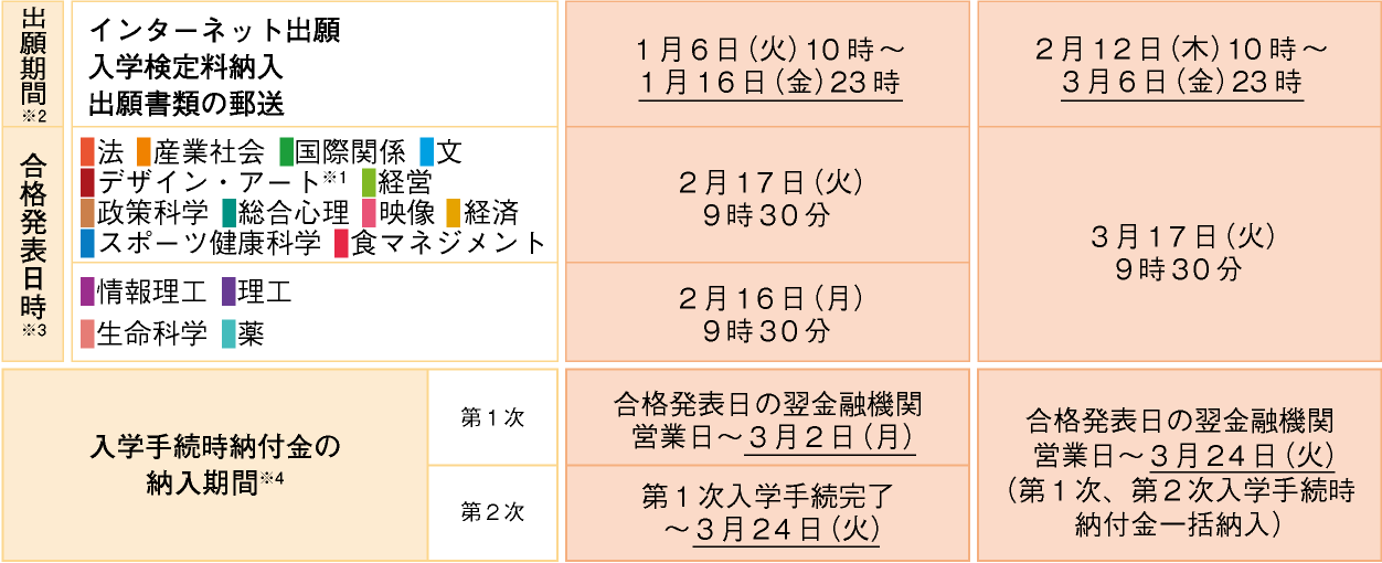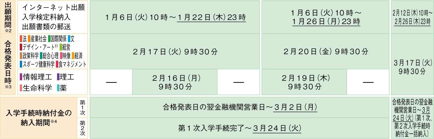 - ※3入学手続の状況により欠員の発生が予想される場合に限り、各入学試験方式において追加合格を発表する場合があります。