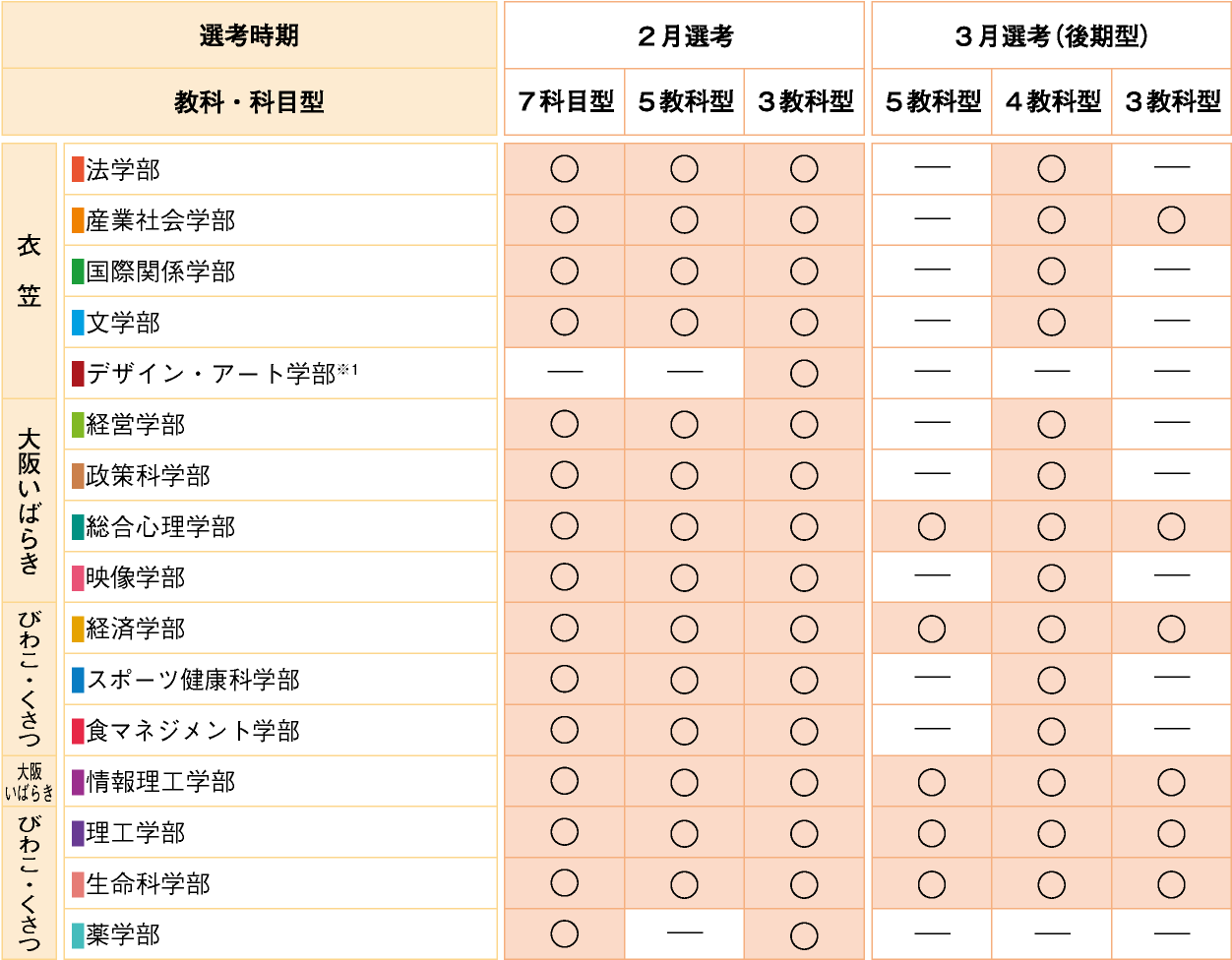 - *入学試験方式によっては、当該学部の一部の学科・専攻等の募集を行わない場合があります。詳細はこちらを確認してください。