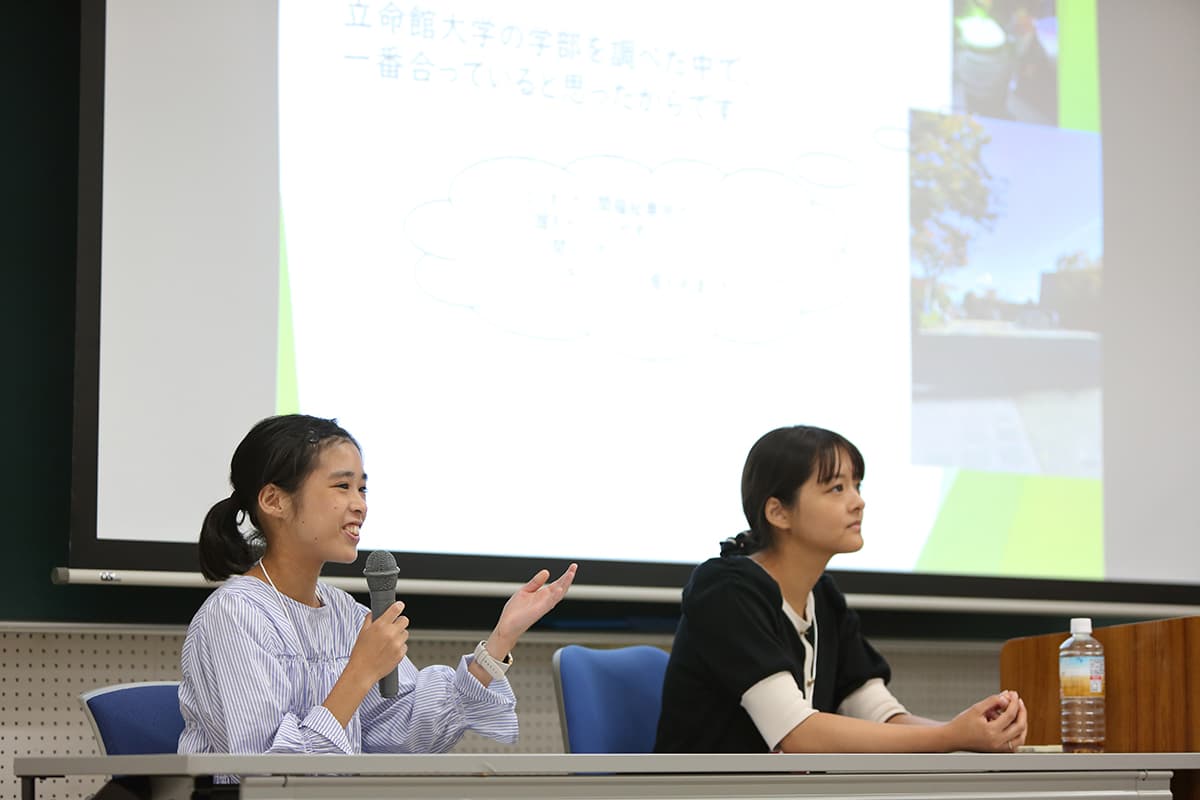 衣笠キャンパス学部企画・模擬授業 各学部の授業を模擬体験したり、施設を見学したり。立命館大学で学ぶ自分の姿が具体的にイメージできるよう、「もしも立命館の学生になったら」を実践学習で体験していただきました。 衣笠キャンパスインデックス