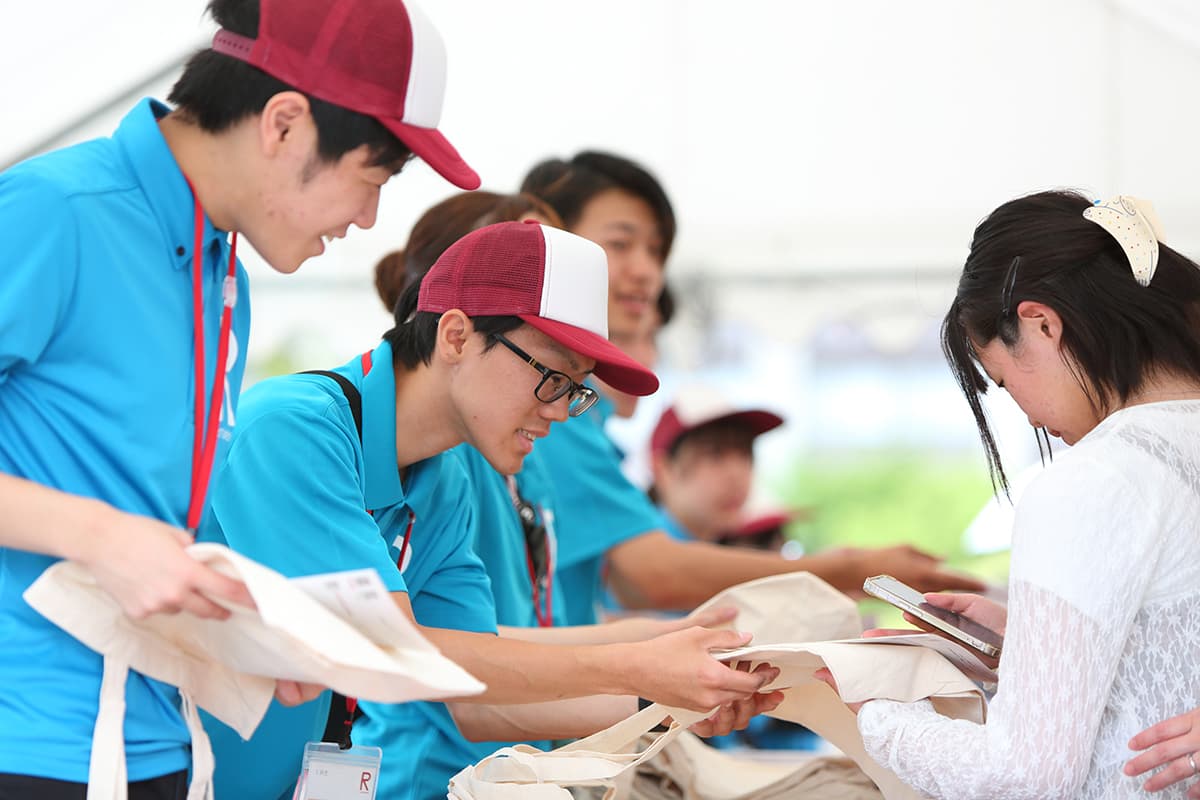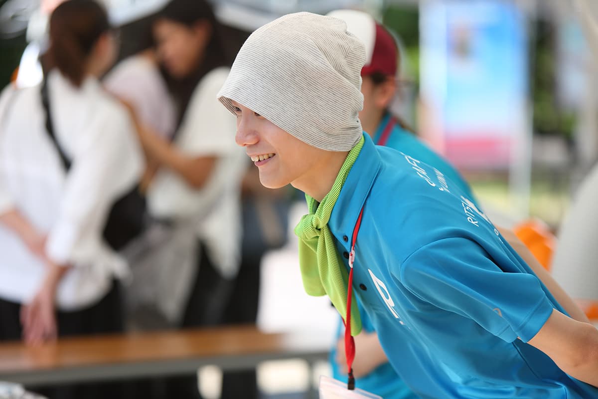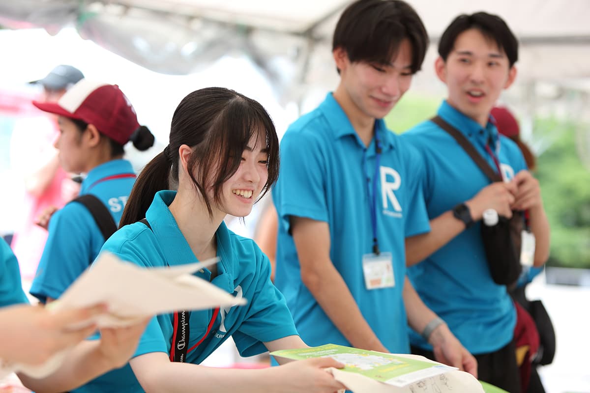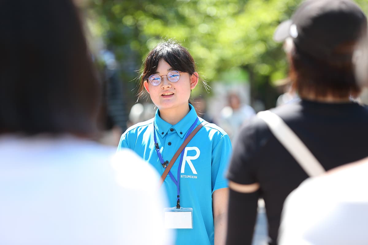 衣笠キャンパス学生スタッフ 各キャンパスの在学生で構成される入試広報学生スタッフがキャンパス内のあちこちで来場者をサポートしました。出身地や入試方式など多様なバックグラウンドを持つ学生たちが、「がんばる高校生を応援したい!」という想いで活動しています。 衣笠キャンパスインデックス