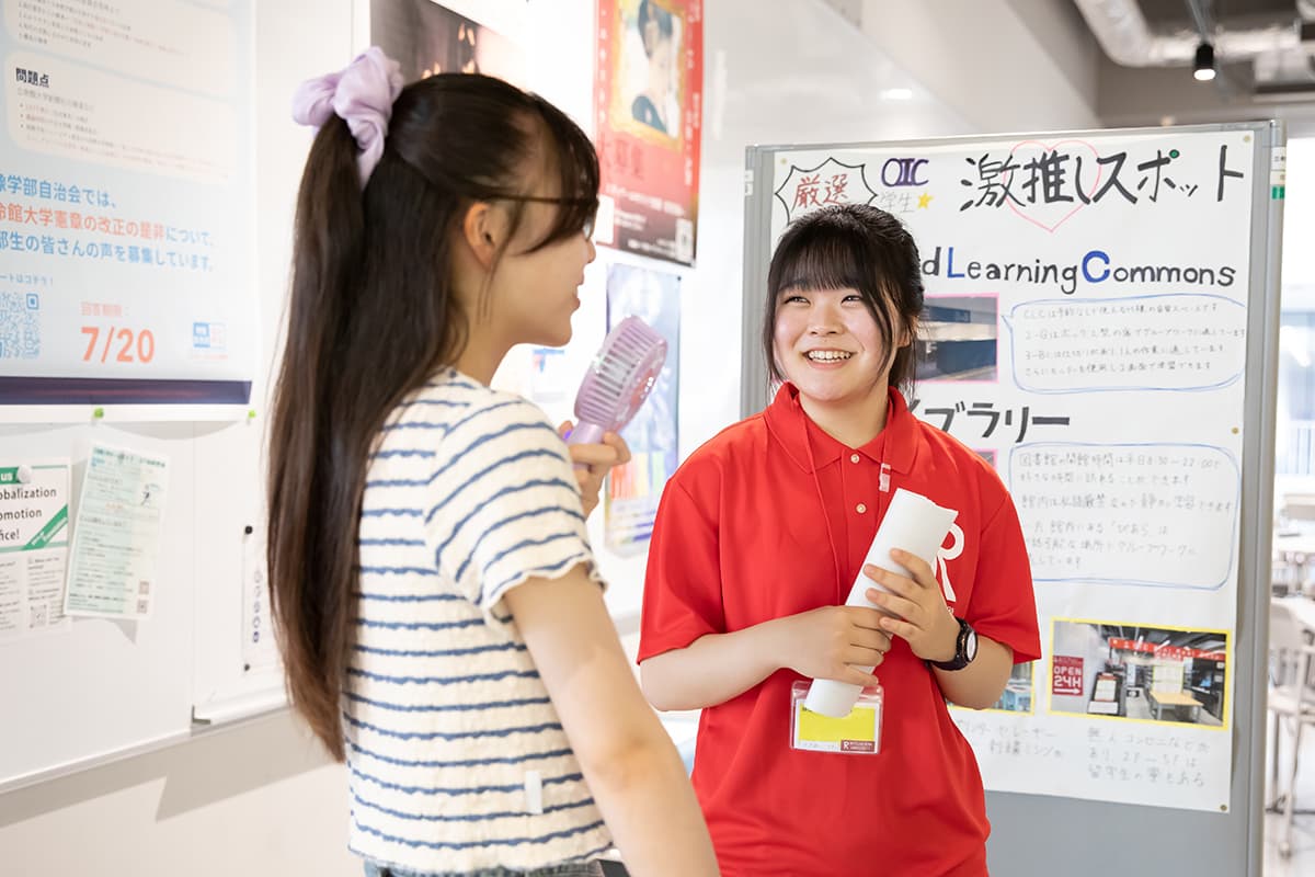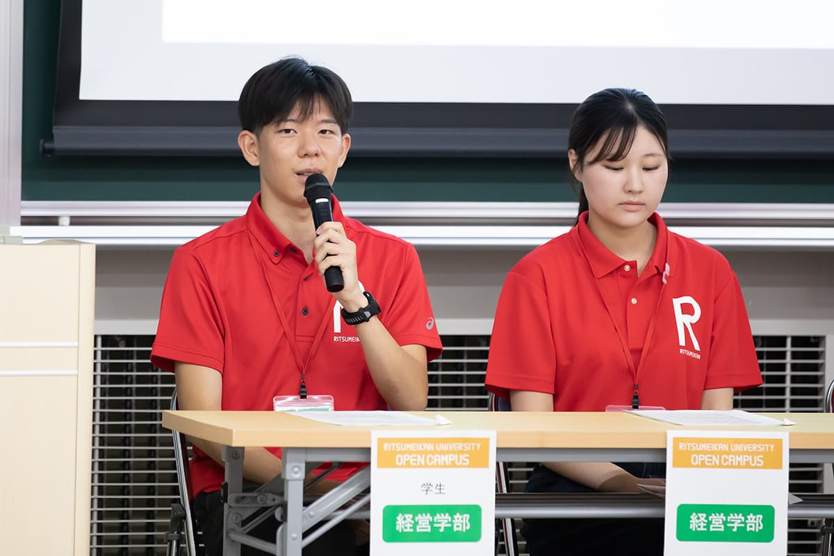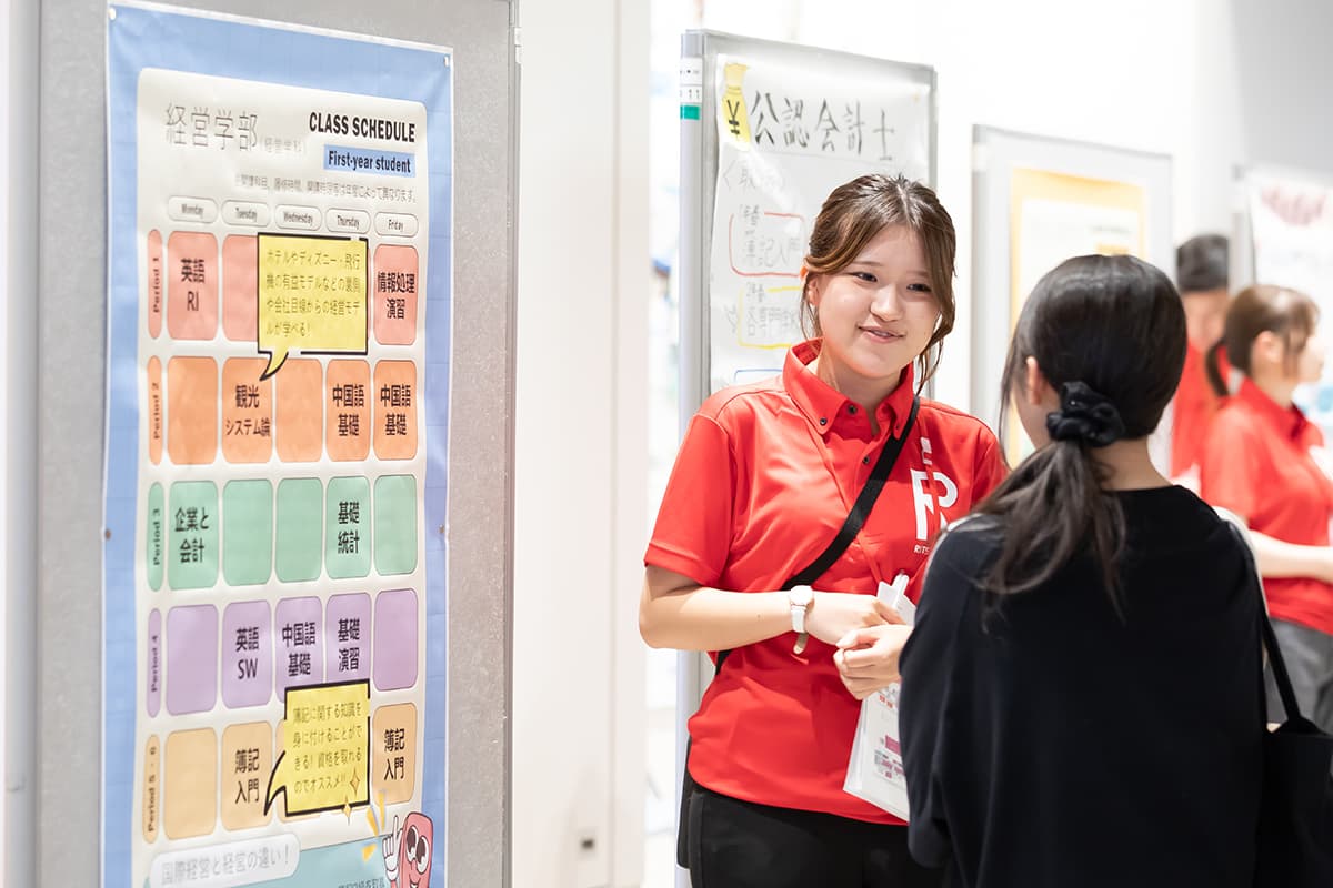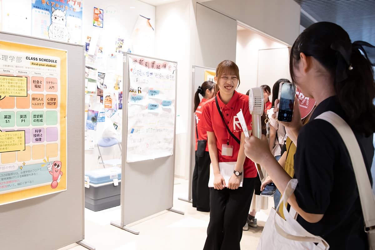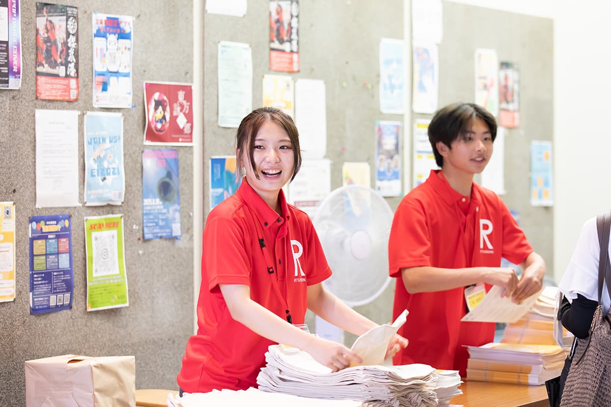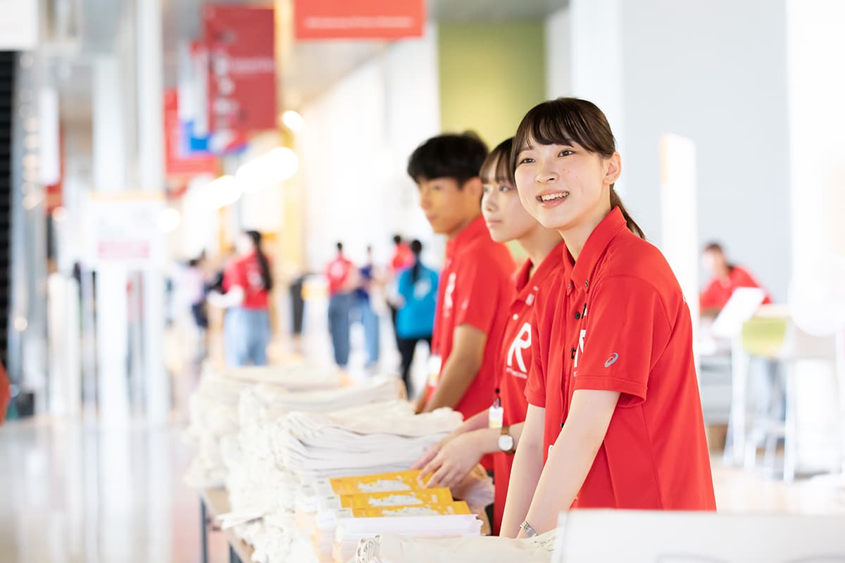 大阪いばらきキャンパス学生スタッフ 各キャンパスの在学生で構成される入試広報学生スタッフがキャンパス内のあちこちで来場者をサポートしました。出身地や入試方式など多様なバックグラウンドを持つ学生たちが、「がんばる高校生を応援したい!」という想いで活動しています。 大阪いばらきキャンパスインデックス