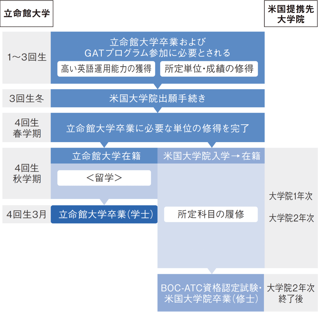 - ※ 上記は一例であり、大枠を記載した略図です。実際の詳細なスケジュールは立命館大学および米国提携先大学院の学年暦に準じます。
