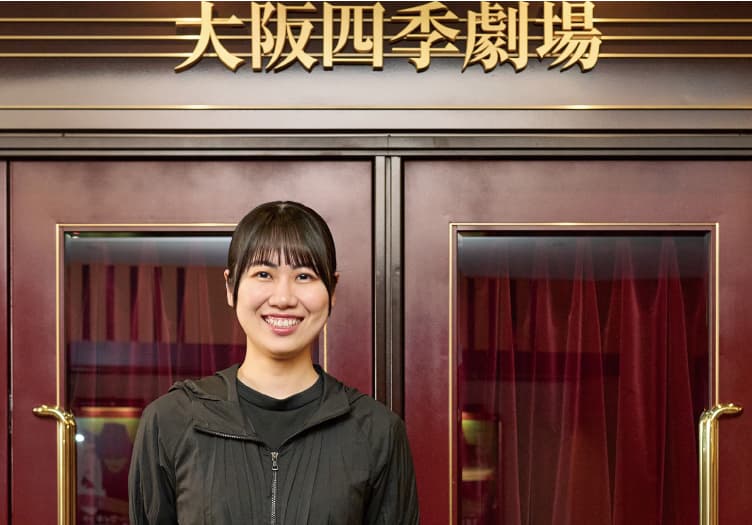 学生時代に劇団四季の舞台「ライオンキング」を観て舞台演出や美術に惹かれ、入団しました。現在は電動の大道具を動かす機構操作員として、舞台公演に携わっています。映像学部に入学を決めた理由は、舞台芸術の表現の幅を広げる方法の一つとして映像に興味を持ったからです。在学中は、立命館映像展のPVや長編映画、社会連携プログラムによるPR映像など多様な映像制作を経験しました。特に特殊講義「びわ湖ホール連携講座」の舞台公演で、舞台映像の制作やアーカイブ映像のディレクションを経験したことで、舞台制作の「裏方」への気持ちが強くなりました。大学で数々の映像制作を通して学び、考えたことが、仕事にも活かされています。これからも演目の制作を通じて、多くの技術を学んでいきたいです。そのために舞台以外の芸術に触れる機会を増やしていきたいと思っています。