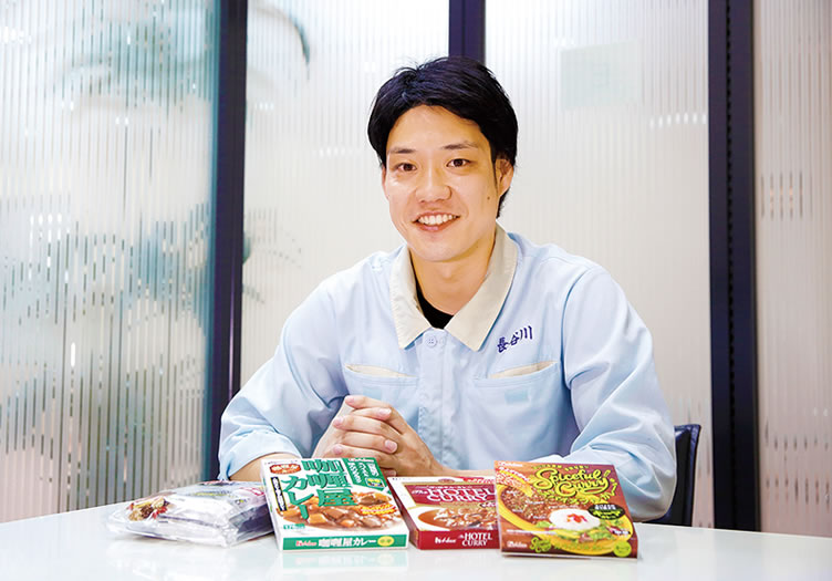 もともと食に興味があり、ものづくりを通じて人に笑顔や感動を与えたいと考えていたためハウス食品を選びました。就職活動中に関わった先輩社員の方々がとてもあたたかく、自分の力を発揮できると感じたことも決め手となりました。現在は家庭用レトルト食品の開発に携わり、企画部門からの提案を具現化していく仕事を担当しています。ただ新しいアイデアを形にするだけでなく、既存の製品をよりおいしく改良したり、製品の品質を向上させていく仕事などもあります。今は開発に携わって4年目で、様々なことにチャレンジしています。将来は自分が企画した製品を自分で開発して、生産、営業まで一貫して行えるようになりたいと思っています。そのために、企画・製造・販売・宣伝といった他の部署とも積極的に交流を図り、新しい市場を開拓できるような商品を生み出すため日々奮闘しています。
