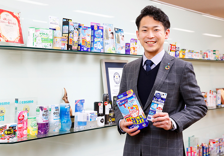 「あったらいいなをかたちにする」のスローガン通り、まず挑戦することが弊社の社風です。学生時代から生活者に役立つ商品の研究開発に携わりたいと考えており、この会社を志望しました。入社後は日用品事業部で「熱さまシート」「のどぬ~るぬれマスク」の新製品開発を担当。一方でブランドの研究リーダーとして、大学と共同で「熱さまシート」の熱中症への効果を検証・発表し、ブランド価値向上に向けた研究戦略と実行にも携わりました。