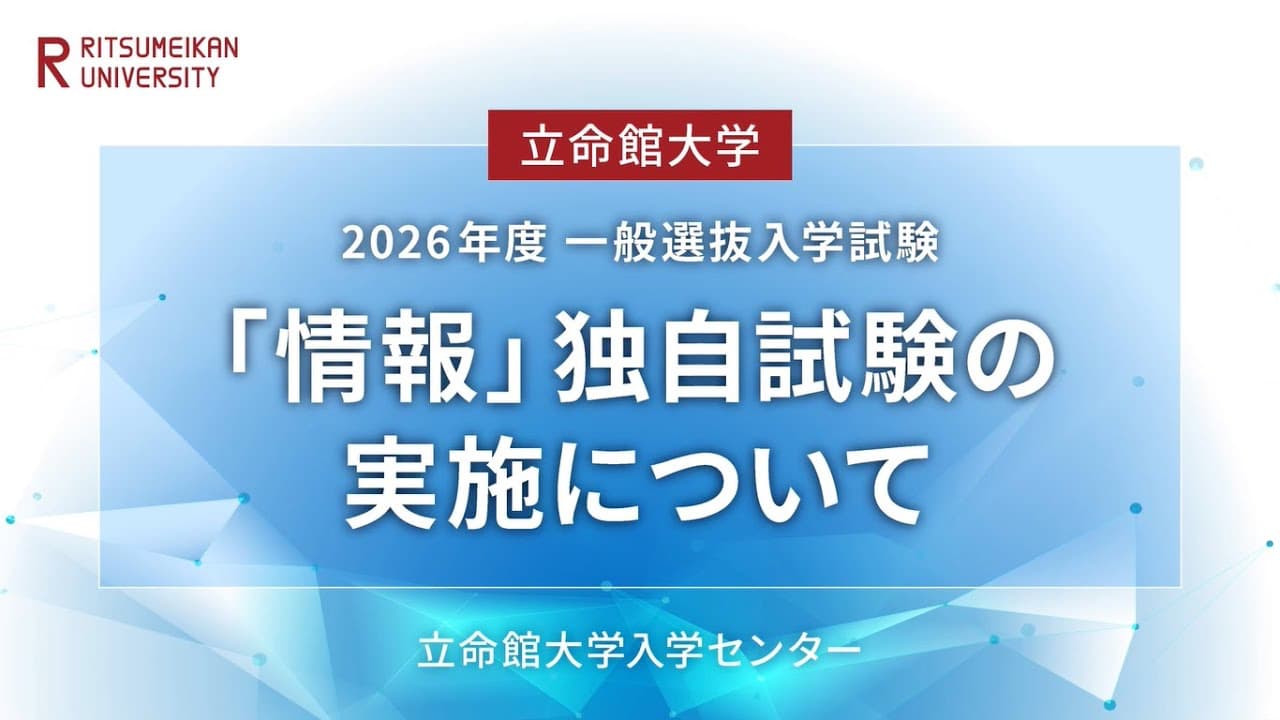 HOME > ムービー > 入試を知る ムービー 入試を知る 一般選抜入学試験 2026年度 3月入試説明 立命館大学の3月入試について、全体概要および各入試方式の詳細について説明します。 一般選抜入試説明 2026年度の各入試方式について、概要や特徴、併願のポイントを説明しています。 2026年度一般選抜入学試験「情報」独自試験の実施について 2026年度の入試では、「学部個別配点方式」で、 本学独自作問による「情報」を新たな出題教科として導入する「情報型」を新設します。 この動画では、その導入に対する考えや学習におけるポイントについてお伝えします。 インターネット出願の手引き『インターネット出願/初回登録編』 一般選抜入試の出願手続きについて、実際の画面を移しながら手順をご説明します。 インターネット出願/ 2回目以降の出願登録編 一般選抜入試の2回目以降の出願手続きについて、実際の画面を移しながら手順をご説明します。 インターネット出願/出願資料送付編 インターネット出願後の出願内容の確認や郵送資料の送付方法について、実際の画面を移しながら手順をご説明します。 AO選抜入学試験 2025年度 UNITE Programについて 立命館大学では、AO選抜入学試験のうち、UNITE Programの修了を出願要件とする入試を実施しています。対象となる学部(政策科学部、総合心理学部、経済学部、スポーツ健康科学部、食マネジメント学部、情報理工学部、生命科学部、薬学部)の受験をお考えの方は、ぜひこの動画およびHPを参考に、UNITE Programの受講を検討してみてください。 学生による受験体験談〜UNITE ProgramからAO選抜まで〜 立命館大学では、AO選抜入学試験のうち、UNITE Programの修了を出願要件とする入試を実施しています。 この動画では、UNITE Program対象のAO選抜で合格した入学生の受験体験談をご紹介します。 ぜひこの動画を参考に不安や疑問を解消し、UNITE Programの受講やその先のAO選抜への挑戦をご検討ください。 AO選抜入試説明 2026年度の各入試方式について、概要や特徴を説明しています。 学部ごとのAO入試の詳細は「学部を知る」ページでご確認ください。 ムービー 入試を知る 大学を知る 学部を知る 学生生活サポートを知る 英語学位プログラムの入試を知る 受験生応援プロジェクト